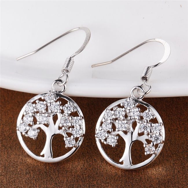 Ohrringe für alle Frauen, die die Symbolik des Lebensbaums lieben! Sie sind mit kleinen Steinen verziert und Sie können aus 2 Farben wählen.