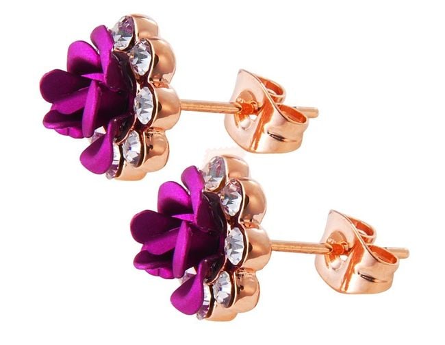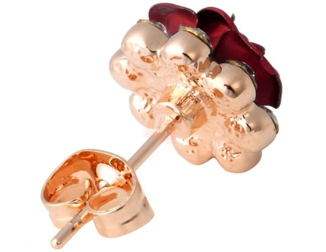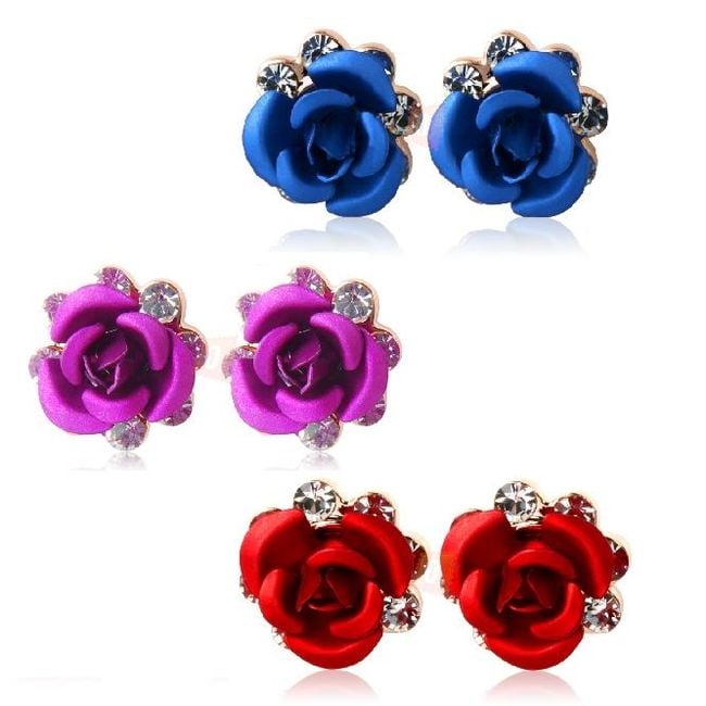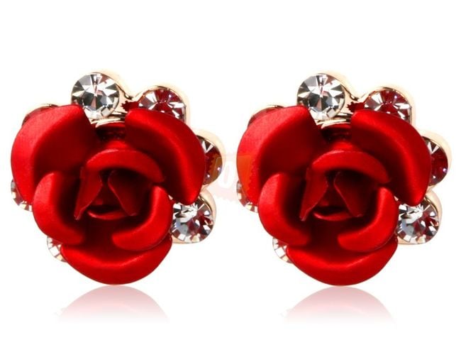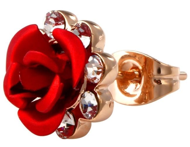 Wunderschöne Rosenohrringe, ergänzt mit glitzernden, geschliffenen Steinen, verleihen jedem Outfit einen Hauch von frühlingshafter Frische.