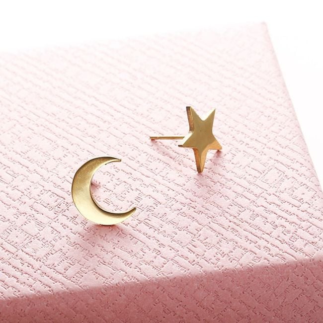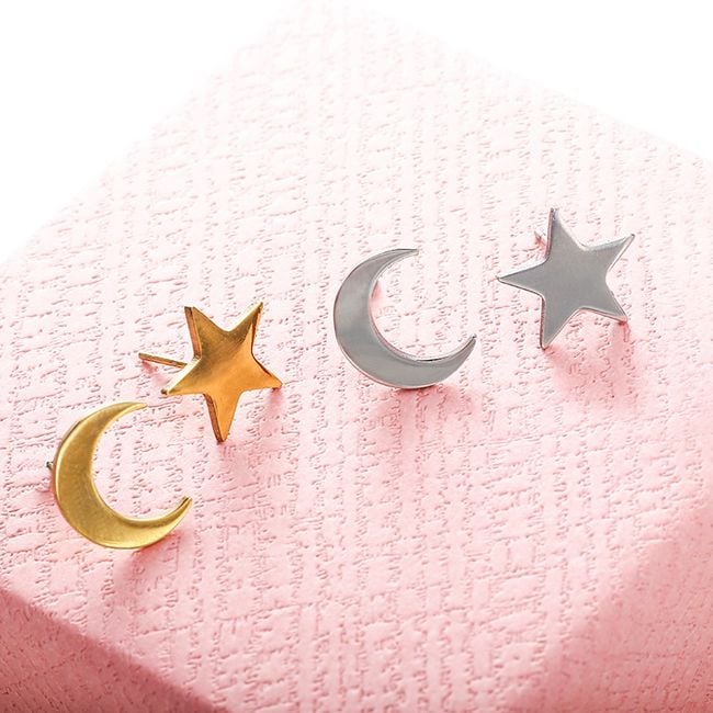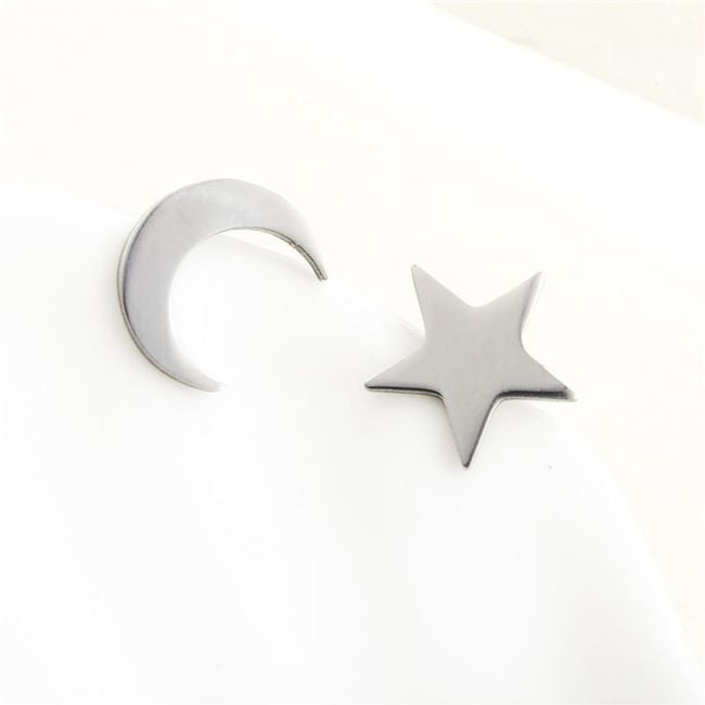 Die Ohrringe sind einfarbig, sehen aus wie Mond und Stern und können in einem oder beiden Ohren getragen werden.