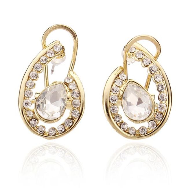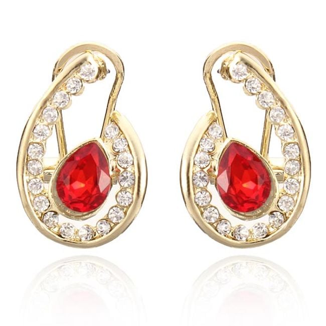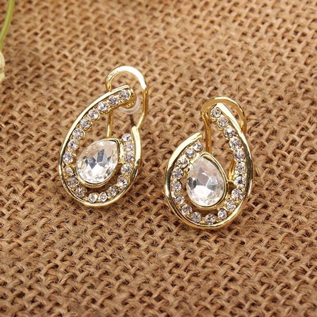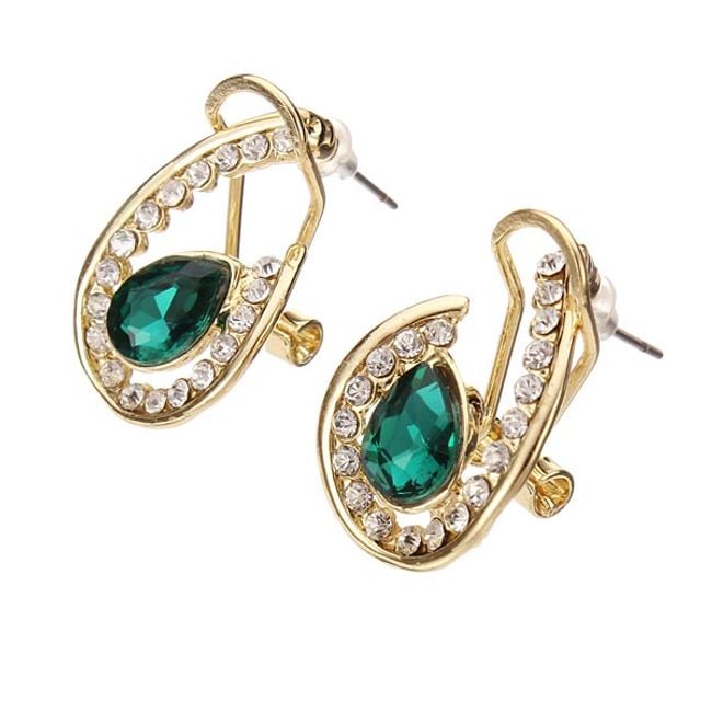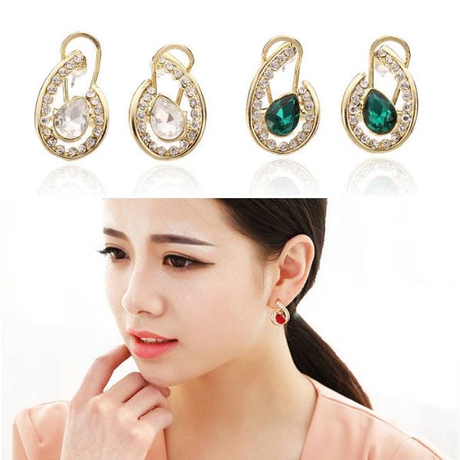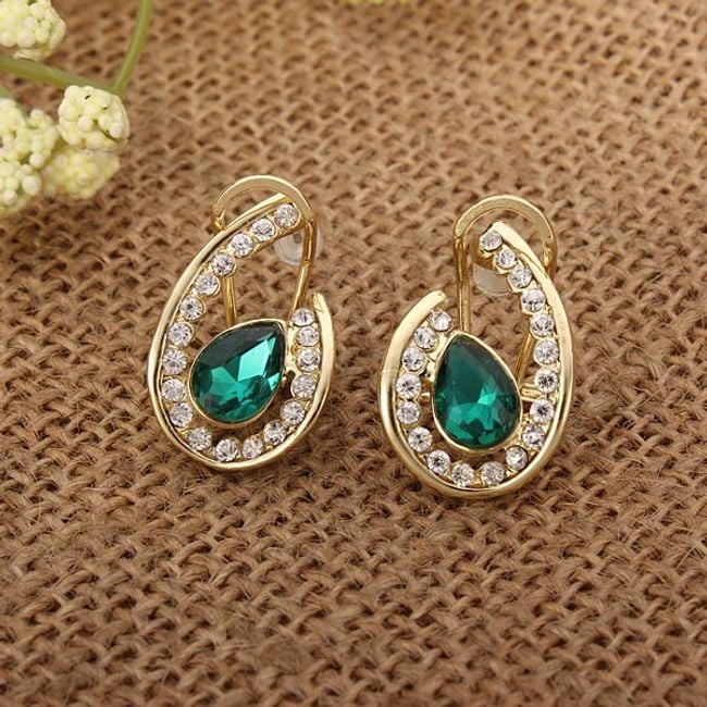 Schöne ovale Ohrringe in Goldfarbe eignen sich nicht nur für besondere Anlässe. Rund um den großen bunten Stein sind kleine weiße Steine gesetzt. Die Farbe des großen Steins ist in 3 Farben erhältlich.