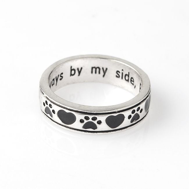 Haben Sie einen pelzigen Begleiter zu Hause, ohne den Sie keinen Schritt machen können? Drücken Sie Ihre Liebe zu Hunden mit einem Ring aus. Der Ring hat auf der Innenseite Motive von Herzen und Pfoten sowie die Inschrift: Always by my side, Forever in my heart. Er hat ein zartes Design, das sich gut für den täglichen Gebrauch eignet.