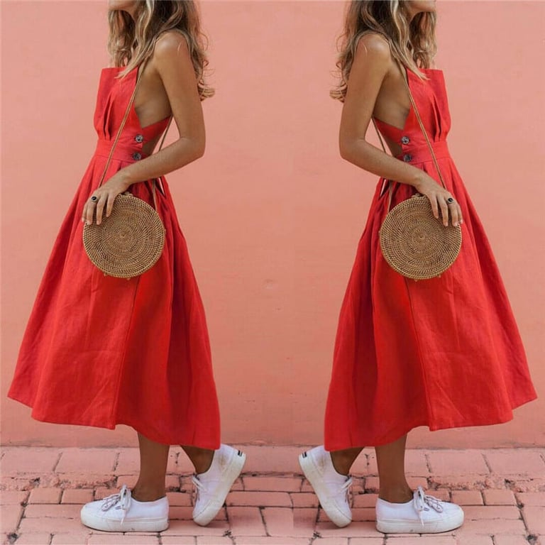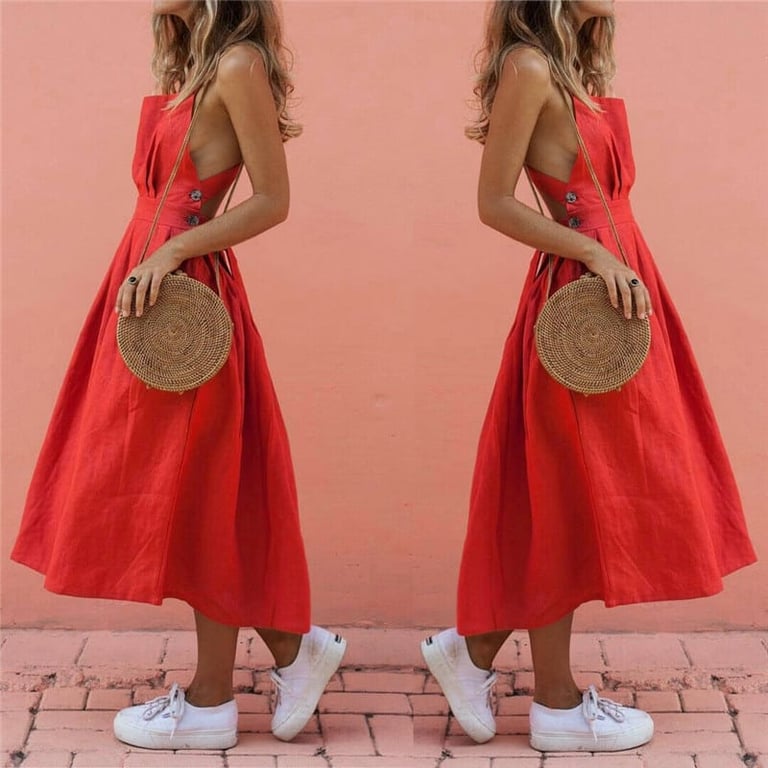 Schöne Damen rote Kleider aus der Sommerkollektion 2025. Schöne Damen rote Kleider aus der Sommerkollektion 2025. Hohe Produktqualität.