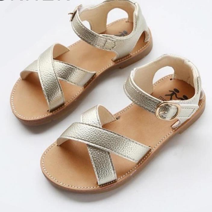 Sommer-Mädchen-Sandalen in Schwarz oder Gold. Mit Riemenverschluss. Hergestellt aus PU.
