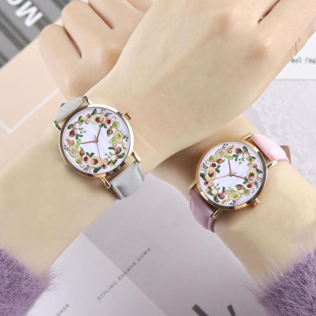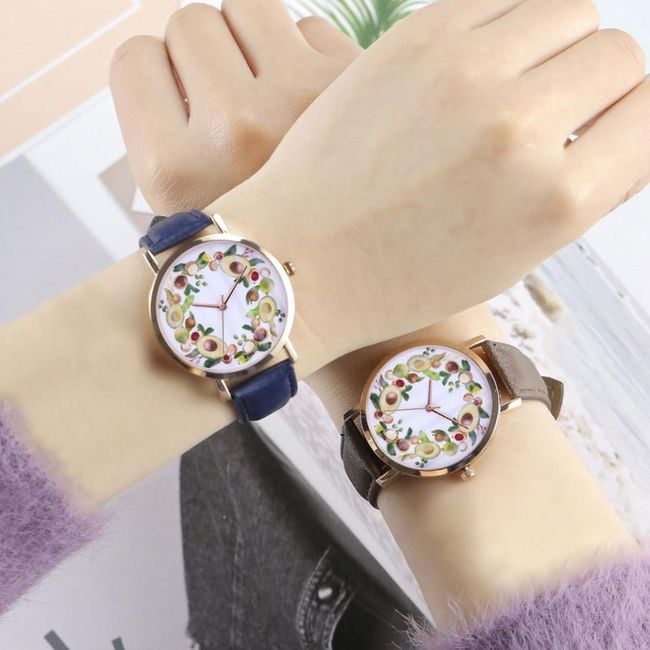 Originaluhren mit einem Kunstlederarmband verfügen über ein interessantes Zifferblatt mit Obstmotiv. Sie sind in 5 Farbvarianten erhältlich.