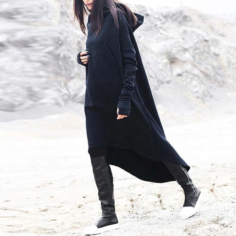Stylischer Damenpullover, der die richtige Länge hat! Die Ärmel sind toll, da Sie Ihren Daumen hindurchstecken können, sodass auch Ihre Hände warm bleiben, und außerdem ist der Pullover mit Kapuze, sodass Sie sich bei großer Kälte ganz verstecken können!