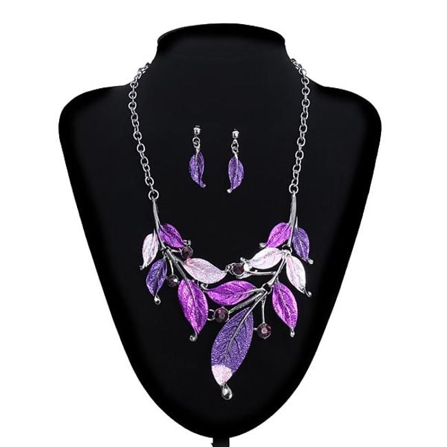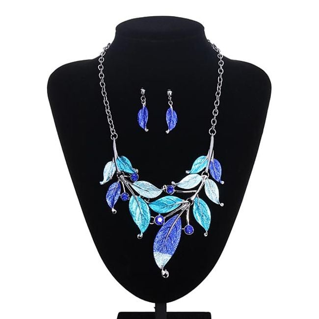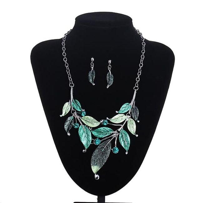 Moderne Set mit Blättern. Eine großartige Ergänzung zu jeder Kleidung. Passt perfekt zu einfarbigen Kleidern sowohl tagsüber als auch bei festlichen Anlässen.