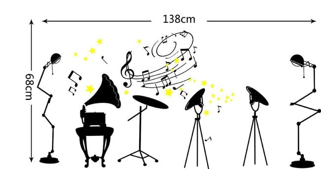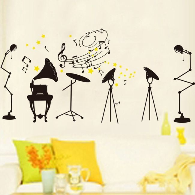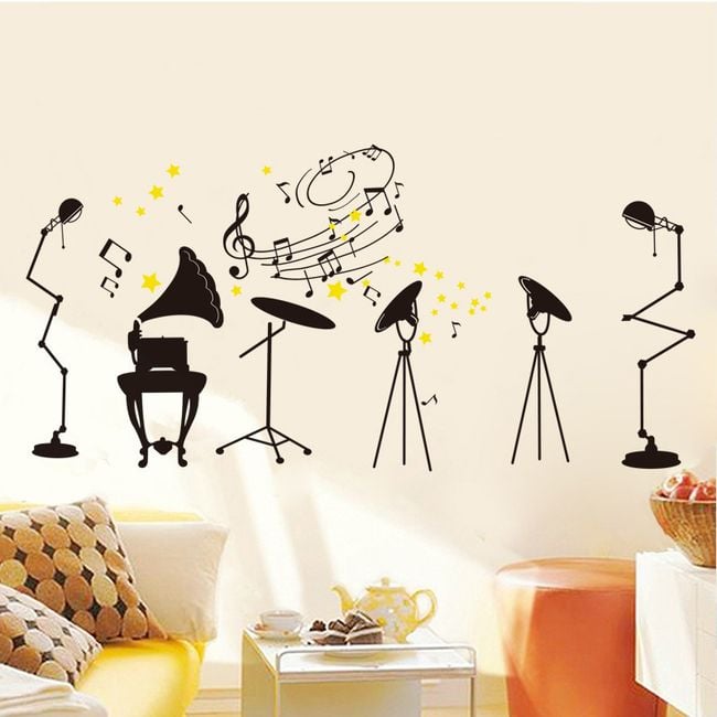 Plastik-Wandaufkleber mit schönen Musikmotiven.